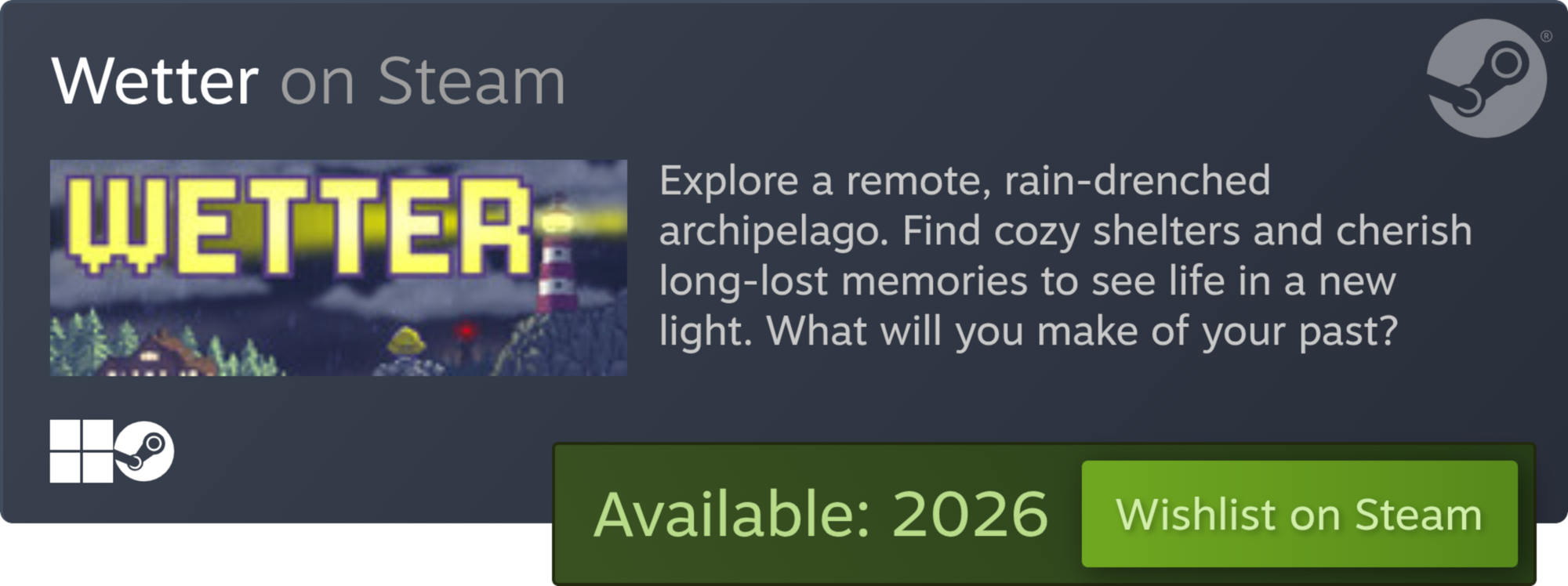- Atmospheric Exploration: Wander rain-soaked, hand-crafted pixel art islands, hearing the storm's howl above and every splashy step below. Or tune in to cozy lo-fi beats as you journey.
